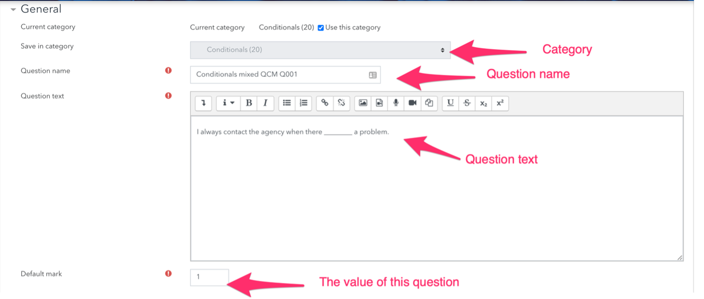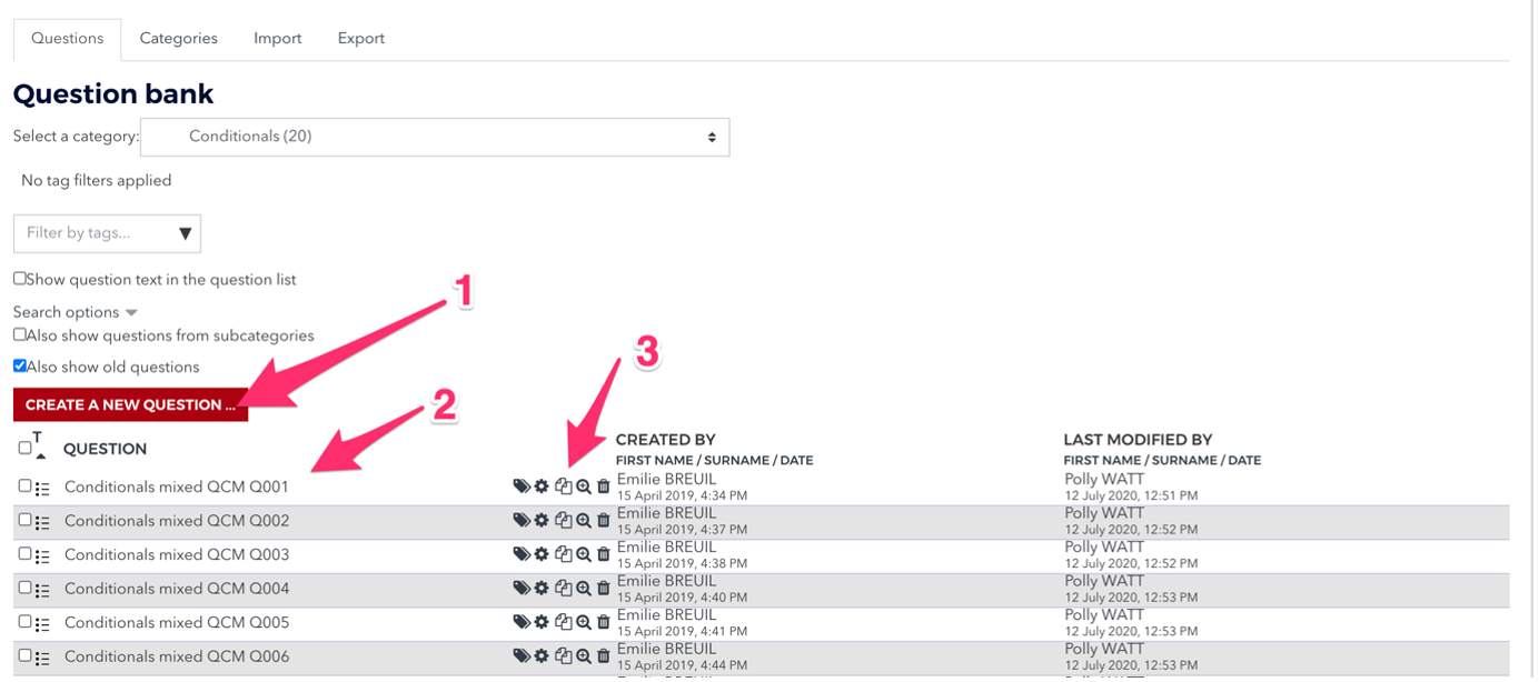 When you create a question you will generally be creating a series of questions – so here we have used the kind of grammar “Conditionals mixed” the type of question “QCM” and the question number.