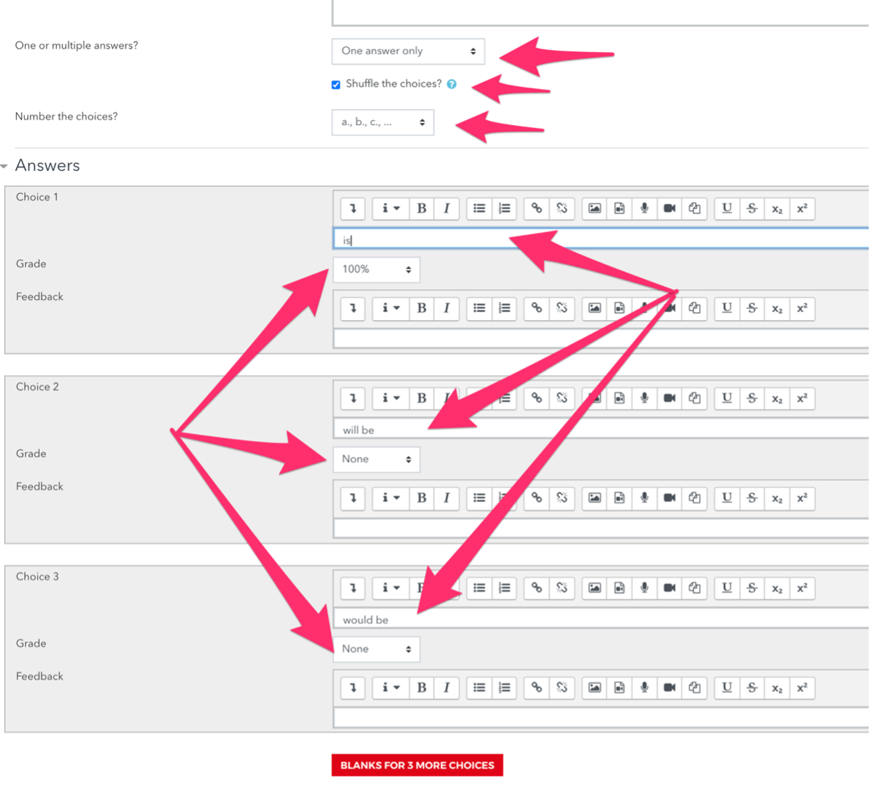 Note: At least one of the choices needs to be marked as 100%.