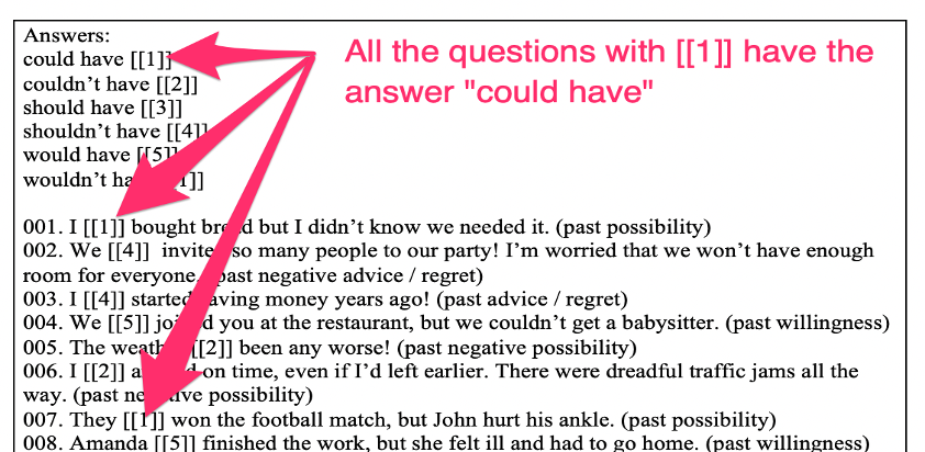 Step 1: Create a word document so that the answers for each question always have the same number in brackets.